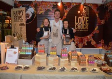 Valerie van Dijck, Dirk Loefs en Anne Heetderks bij Lovechock. Zij presenteerden de gloednieuwe Extra Pure bar.