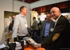 Rechts simon van Zanten en in het midden Arjan Sonneveld van GrowGroup in gesprek met klanten.