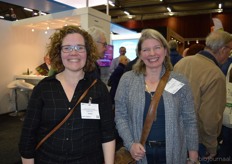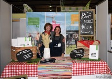 "Laura Scheel en Monique van der Meer-Ruhe van Florentin. Laura: "We merken dat Florentin inmiddels goed bekend is onder de bezoekers. Er komen heel veel winkeliers langs bij onze stand, dus dat is heel positief."