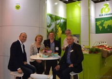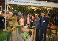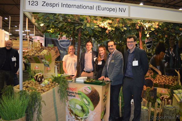 Monique Bloemert, Jonas Bertels, Eline Voigt, Ton Theunissen en Bert Arnout lieten de hele beurs proeven van de biologische Zespri-kiwi's.