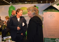 Wim Bovendeert van Natuurboeren uit de Buurt en Geertje Schlaman, mede organisator van het streekplein en organisator van de biologische velddag, gehouden op 21 juni dit jaar.