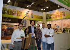 ProLaTerre presenteerde de nieuwe tofusmaak gember- knoflook. Van links naar rechts: Fabio Erriu, Shanti Habets, Rob Swensen, Femke Mosch, Jelle van Twillert en Naresh Ramdjas.