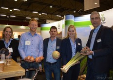 "Bejo Zaden: Petra Burger, Ronald Hand, Joost Litjens, Emmelie van de Velde en Robert Schilder. Robert: "De eerste dag heb ik bijna alle klanten uit Noord- Nederland gesproken." Bejo schonk extra aandacht aan de Hylander, een milde resistente bio-ui."
