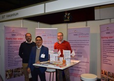 Links Gerrit Katerberg van Terra MBO op de stand bij Gert van Drie en Jaap Temmermans van Agromix.
