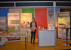 "Links vertelt Luc van den Heele over de hennep- producten van De Hobbit. Rechts Edith Gomes en Annie Veyt vertelden meer over de producten van zusterbedrijf Abinda. Edith: "Abinda is gespecialiseerd in biologisch broodbeleg, de basis is tofu, aangevuld met groenten en kruiden."