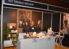 Claudia Liliana Alarcon Avila en haar collega van Jentschura International. Zij zoeken nog verdelers in Nederland en presenteerden onder meer een hoofdhuidmassage-borstel.