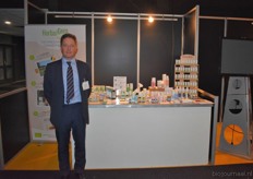 Ramon van Huffelen in de gloednieuwe stand van Natrada, waarin de nadruk lag op het Organic Wine Concept.
