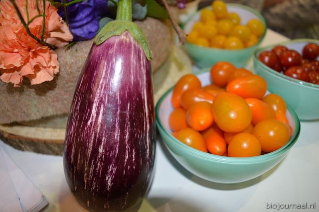 Rijk Zwaan introduceerde de gestreepte Lydia RZ Aubergine en de oranje mini peertomaatjes Operino RZ.