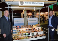 Duco Snouck Hurgronje en zoon Christiaan bij een greep uit het assortiment van Waddendelicatessen. Nieuw is de duindoorn thee.