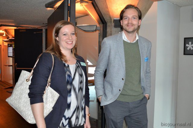 Paul van Schijndel (Rhumveld Winter & Konijn) en Martha Jeuken (DO-IT) maakten kennis met elkaar tijdens de BioBorrel.