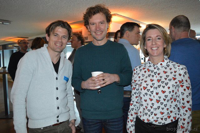Links en recths Maarten Vosselman en Annemarie Kruize van De Bolster Biologische Zaden en in het midden Krispijn van den Dries (BioRomeo).