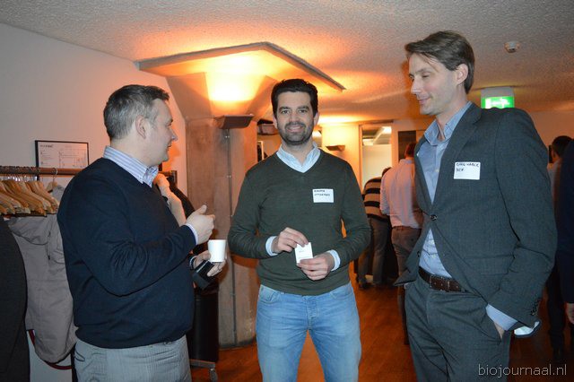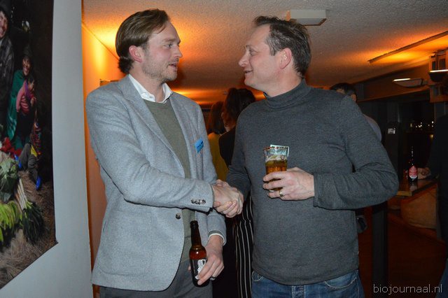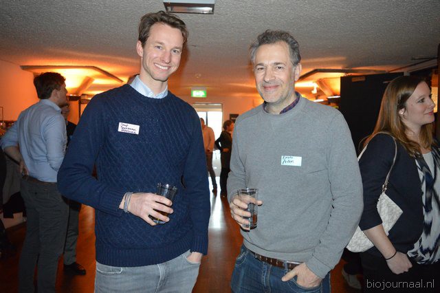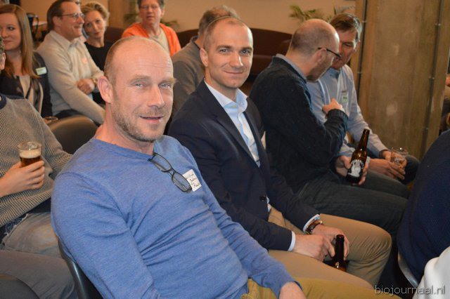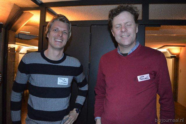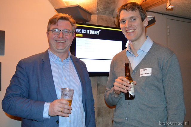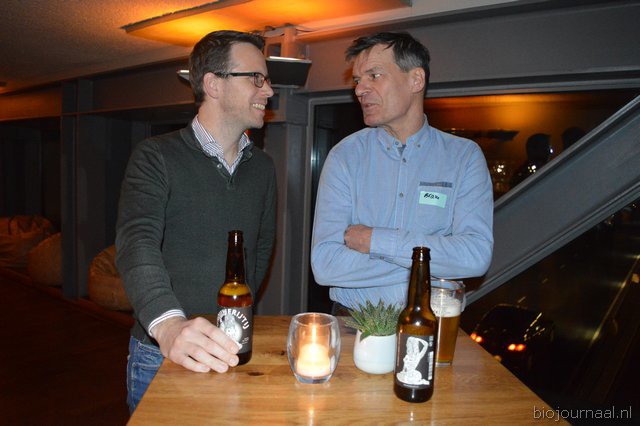 Jaap Stockmann van de Meelunie kwam zich oriënteren op de kansen in biologisch tijdens de BioBorrel. Rechts Dmitri Peters van JetDrinks.