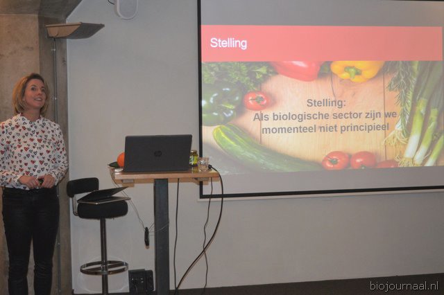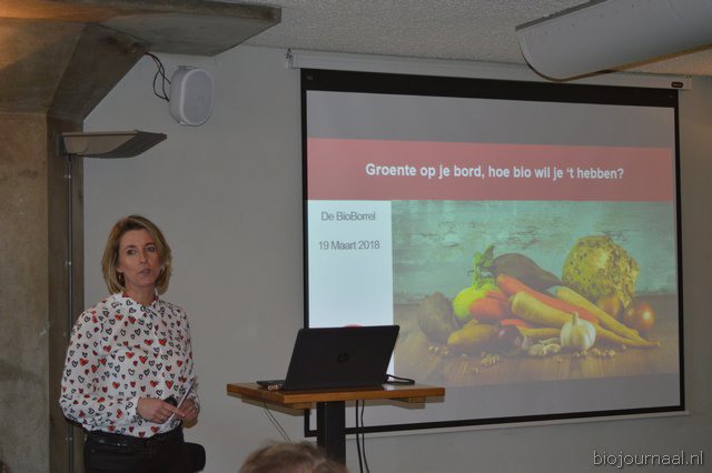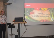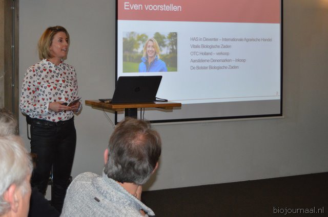 Annemarie Kruize, Sales Manager van De Bolster Biologische Zaden, hield vervolgens een presentatie waarin ze de aanwezigen mee nam in het vraagstuk hoe biologisch we als sector onze biologische groenten eigenlijk willen hebben.