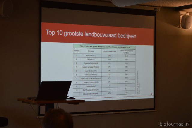 "Ze gaf ook een overzicht van de machtsverhouding binnen de landbouwzaden-sector. "Monsanto is eigenlijk gewoon een ongelooflijk zaadbedrijf."
