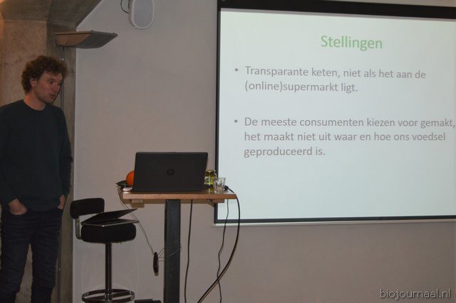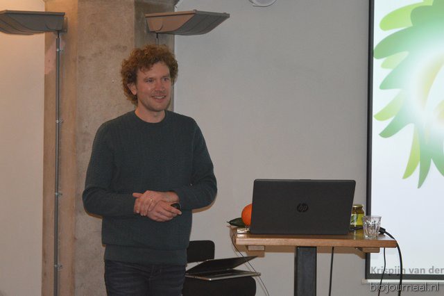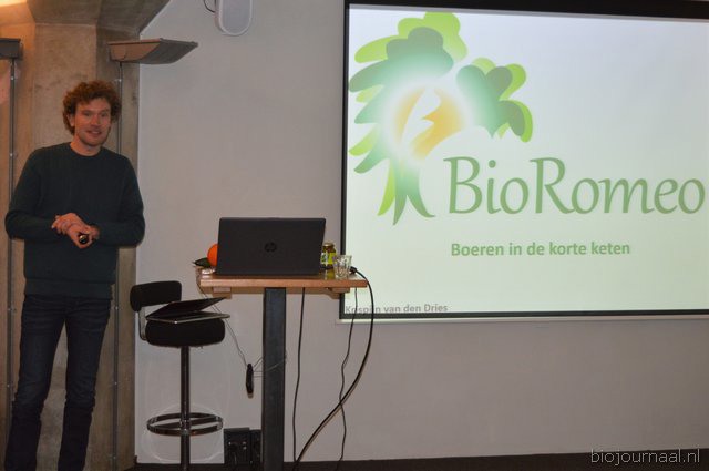 Krispijn van den Dries (BioRomeo) vertelde vervolgens in zijn presentatie over de rol van de boer in de korte keten. Hij runt samen met zijn vader en een compagnon een biologische akkerbouwbedrijf in Ens en heeft BioRomeo opgericht.