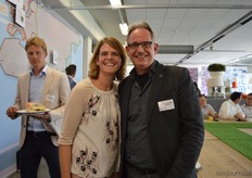 Edwin Crombags (Weerribben Zuivel) met Marian Blom (Bionext). De projectleider bij Bionext is sinds vorige maand vicevoorzitter van IFOAM EU.