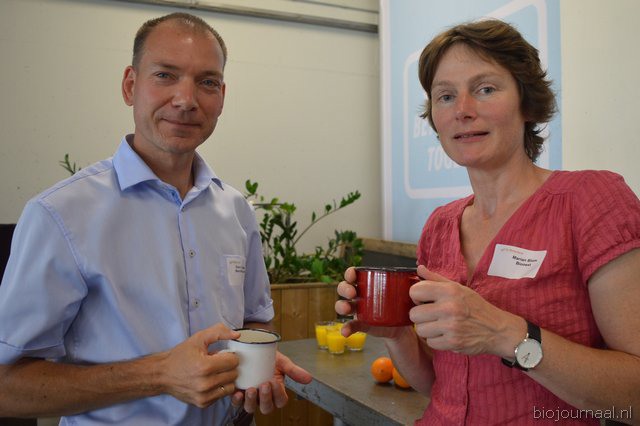 Annemarie Kruize (De Bolster Biologische Zaden) met één van de nieuwe bestuursleden van BioNederland: Hein Wolff (Nautilus Organic).