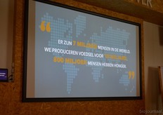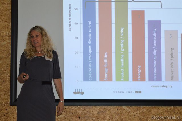 Heike ('Project Leader Supply Chain management' bij WUR) ging in haar presentatie in op het herkennen en voorkomen van voedselverliezen. Ze liet onder meer zien hoe hoog de verspilling in de verschillende onderdelen van de agrarische sector ligt.