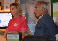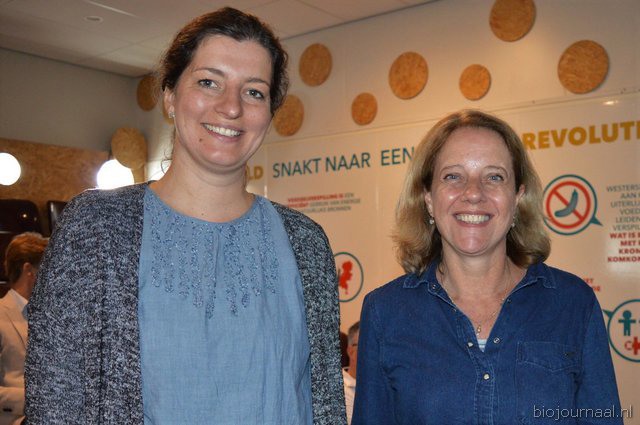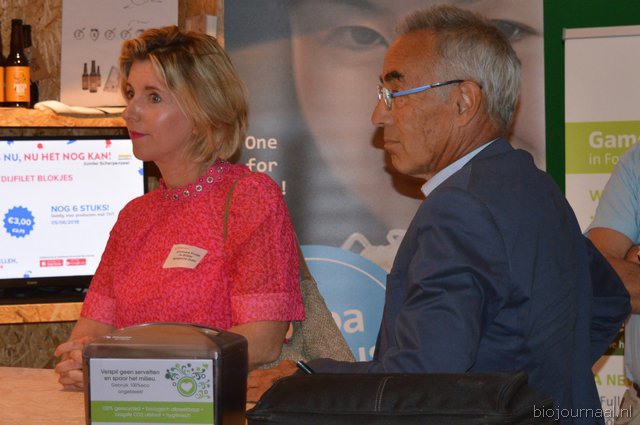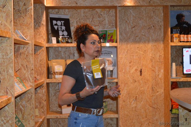 Madelon van Binsbergen was namens Organic Flavour Company aanwezig. Rechts Karst Kooistra van Tradin Organic.
