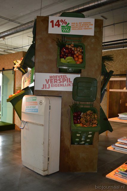 Door het hele pand zijn allerlei feitjes over voedselverspilling te vinden.