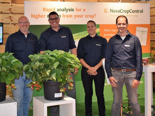 Sjoerd Smits, Koen van Kempen, Eric Hegger en Joan Timmermans van Nova Crop Control staan hier vooral om de internationale klanten te ontmoeten.