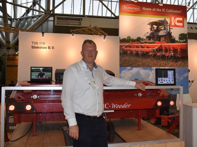 "Leonard Mol van Steketee B.V. laat de bezoekers zijn high tech machines zien. "Er zitten camera's in de machine welke de goede plant herkent. Wanneer hij ingesteld is op kool dan laat hij derest liggen", zo vertelt Leonard."