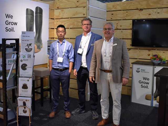 "Hongchao Pan, Johan Middelkamp en Pius Floris vertegenwoordigen Plant Health Care. Ze introduceren Fulvic25 welke door Demeter is toegelaten. "Een must voor iedere bodem", vertelt Johan."