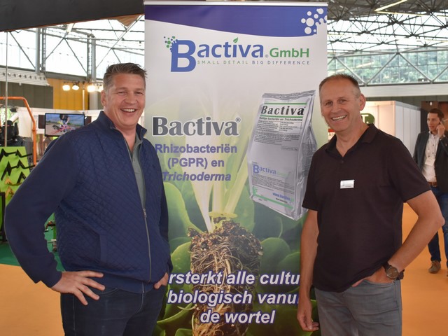 "Cor Driessen en Arjen Verber van Bactiva hebben goede verwachtigen van de beurs. "We hebben zo op de eerste ochtend al heel wat mensen gesproken en zijn positief. We zijn een jong en klein bedrijf en vinden het leuk dat we onszelf kunnen presenteren hier op de TOFF", aldus Cor."