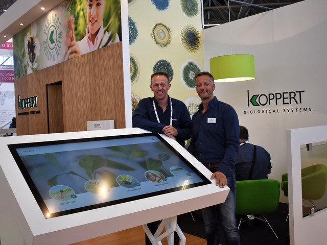 Koppert Biological Systems is ook aanwezig en Mark van der Werf en Dave Heij vertellen dat ze met het bedrijf stappen aan het zetten zijn. Momenteel worden er proeven gedaan en testen uitgevoerd en ze hopen eind dit jaar meer te kunnen vertellen.
