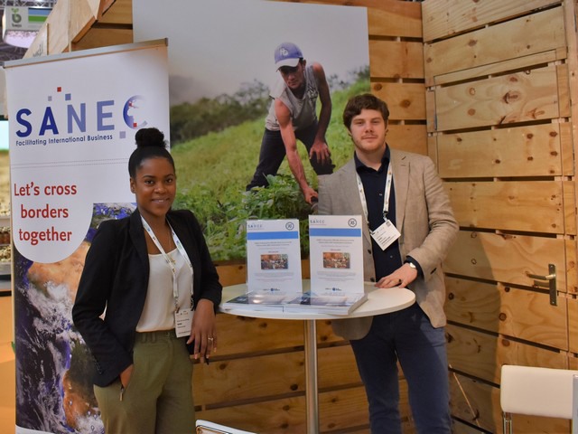 Alice Cannoo-Tomas en Willem Steenstra vertegenwoordigen Sanec en delen de stand samen met Tradin.