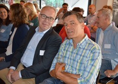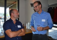 Oeble Kempenaar (High Quality Organics) wacht samen met Bram Weijland (Bejo Zaden) tot de presentaties beginnen.