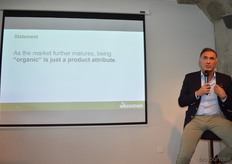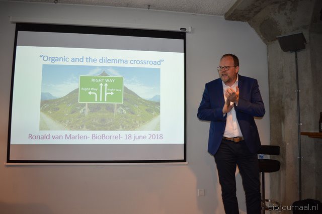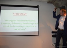 Ronald van Marlen trapte af met een verkorte versie van zijn presentatie 'Organic at a Crossroad'. Hierin ging hij in op de groeiende markt versus de oorspronkelijke biologische normen.
