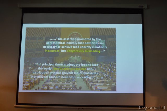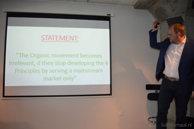 "Hij ging in zijn presentatie ten slotte ook nog in op het feit dat het woord 'biologisch' aan het verdwijnen is. "Ik zie het niet meer terug in verslagen van grote bedrijven. Er zijn inmiddels 17 alternatieve woorden voor biologisch, zoals natuur-inclusieve en circulaire landbouw. De bedoeling hiervan is volgens mij dat het woord 'biologisch' moet verdwijnen. Dat maakt me bang."
