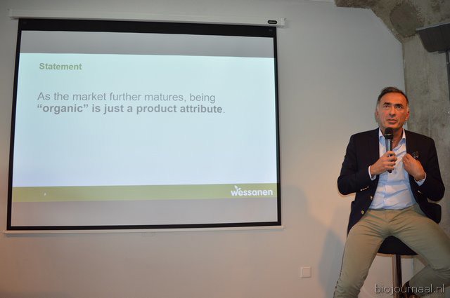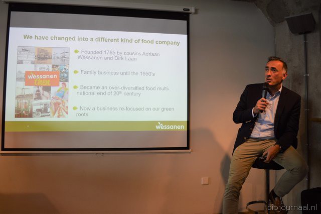 "Hij benadrukte dat Wessanen zich wil onderscheiden met hun bio-producten. "Het is onze taak om een beter product te bieden."