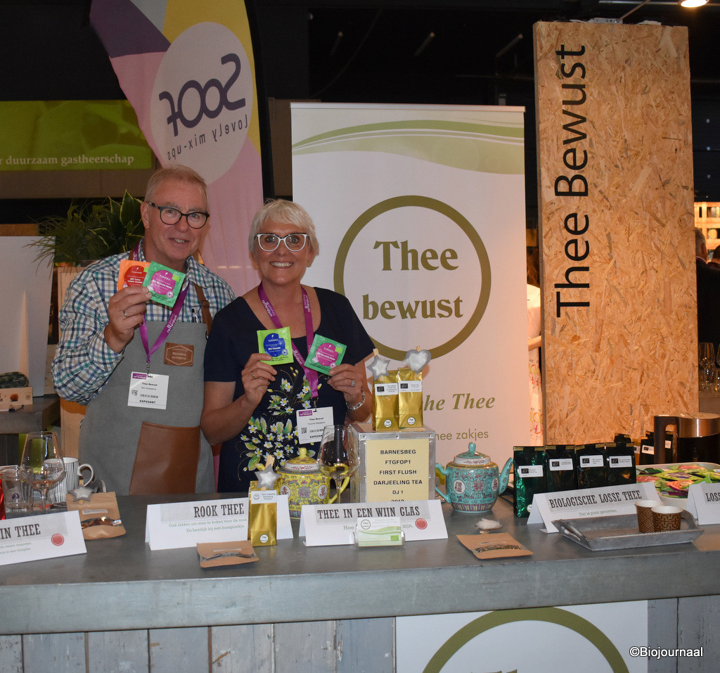 Ron en Yvonne Goossens van Thee Bewust bieden biologische theezakjes aan voor de horeca.
