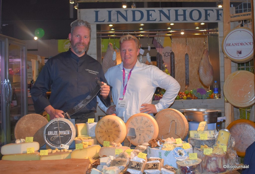 Lindenhoff biedt onder andere bio-groenten en bio-kazen aan. Links: Evert Schönhage, rechts: Maarten van Zanten.