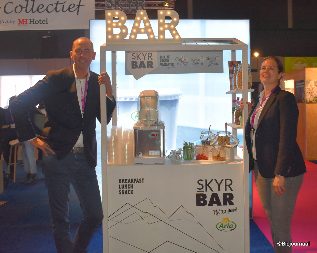 Arla toont hun nieuwe horeca-concept: de Skyrbar. “Mensen kunnen zo zelf de Skyr samenstellen zoals ze willen”, aldus Frederik Kuiper.