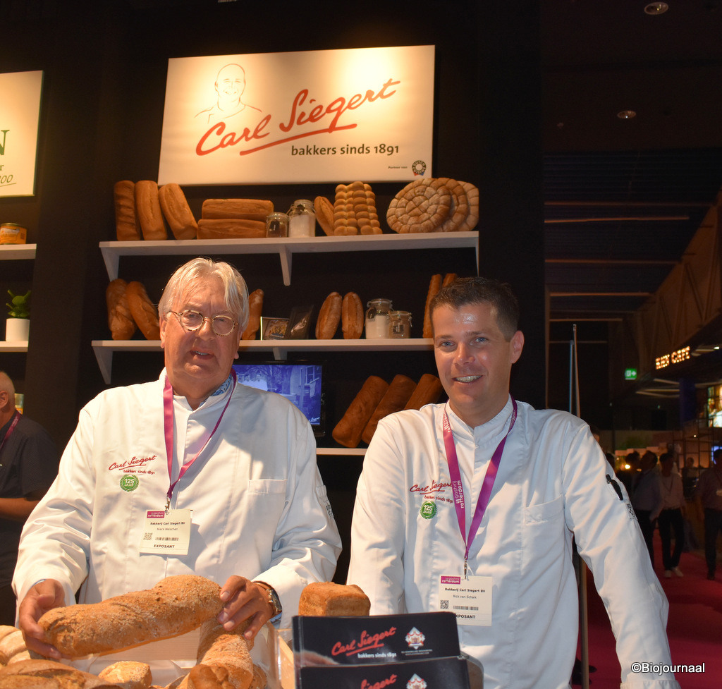 Bakkerij Carl Siegert heeft nieuwe Oldenheimer in het assortiment: 100% volkoren en biologisch. Links: Nieck Welschen, rechts: Rick van Schaik.