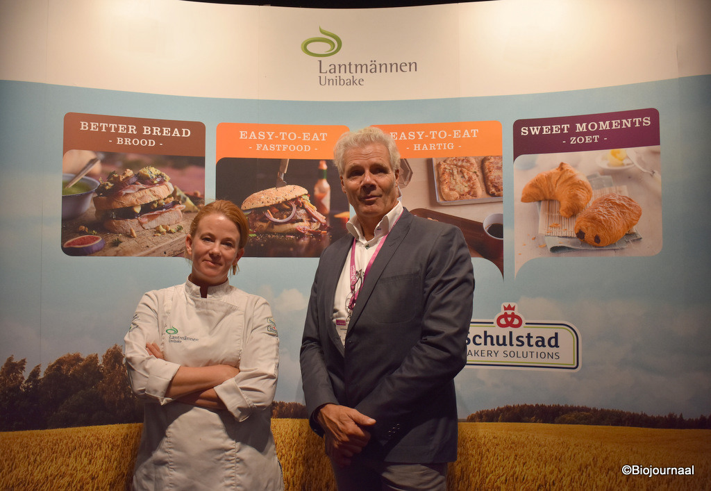 Lantmännen heeft nieuwe biologische broodjes voor de horeca in het assortiment. Links: Monique Nefkins, rechts: Cor Oostrom.
