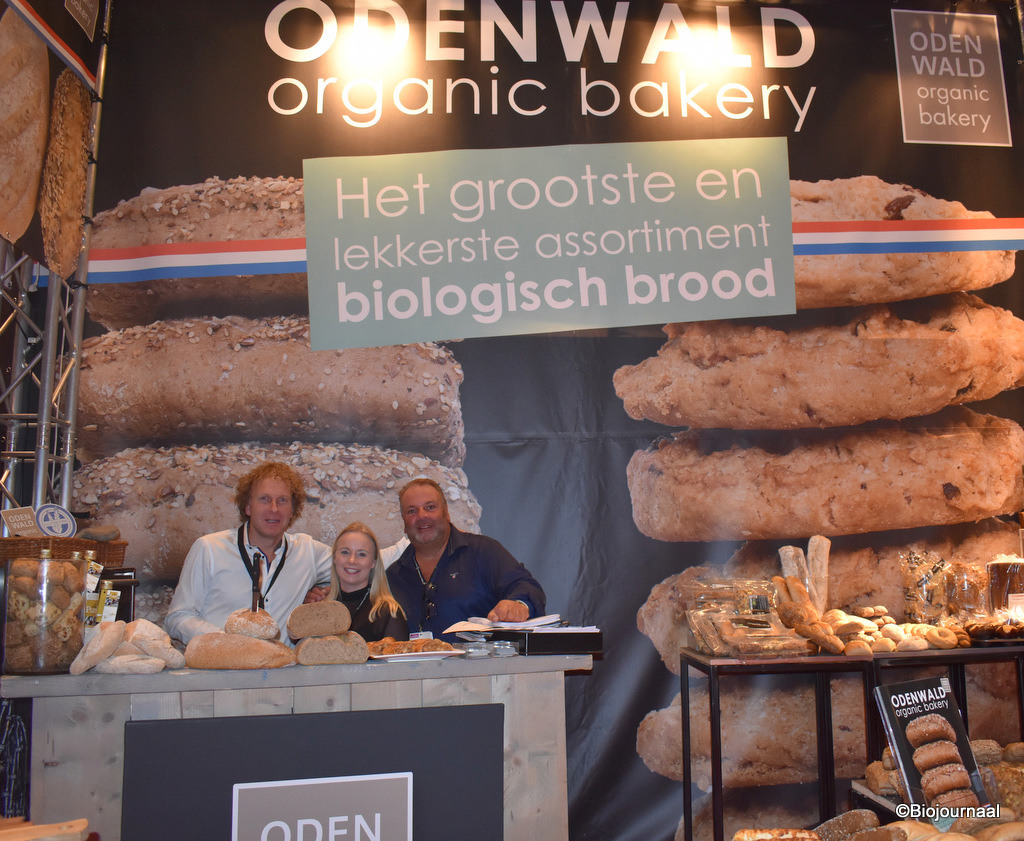 Odenwald toont onder andere hun meest recente product bananabread. V.l.n.r.: Dico Jansen, Martine van Drie, Michael Fase.