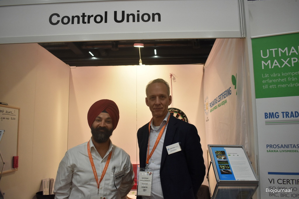 Contol Union was voor het tweede jaar aanwezig op de beurs. “Biologisch groeit in Scandinavië heel hard. We werken veel samen met lokale partners hier, waardoor we goed vertegenwoordigd zijn op de markt”, vertelt Eerik Schipper. Hij staat op de foto met zijn collega Harpreet Singh Sondh.