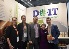 DO-IT introduceert op de beurs een ‘nieuw’ merk op de Scandinavische markt. “De Amaizin-producten zijn nieuw voor Scandinavië”, vertelt Martha Jeuken. Op de foto staan Martha Jeuken, Ruben de Wit, Jurgen Meijer van DO-IT en Michel Jansen en Edith Huizenga van Kleinstesoepfabriek.