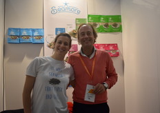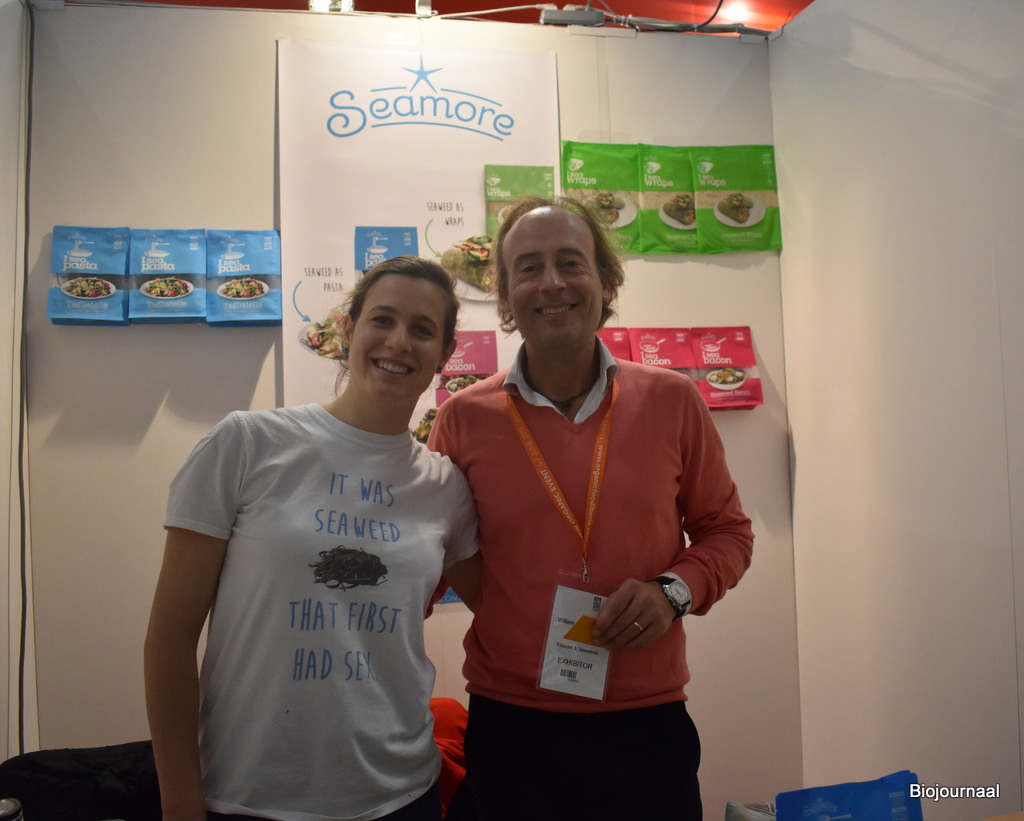 Willem Sodderland en Angela Ferraro van Seamore presenteren hun assortiment aan zeewierproducten. Zij hebben onder andere brood met zeewier en pasta’s. Daarnaast doet het bedrijf veel aan productontwikkeling.