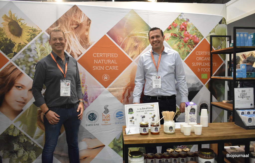 Op de stand van Arie van Houwelingen (links) en Francisco Müller vind je verschillende merken: Royal Green, Earth.line en Sea.line. “We zijn hier voor het eerst met de skin care-producten. Daarnaast hebben we een nieuwe gefermenteerde vitamine B12, dat is een echt onderscheidend product.”