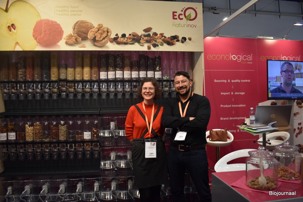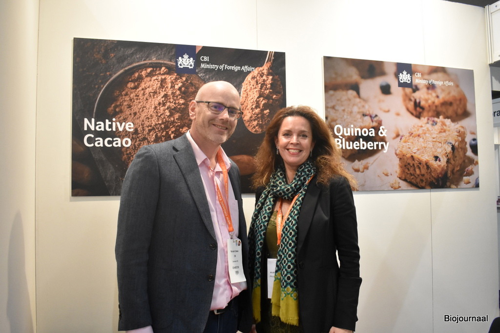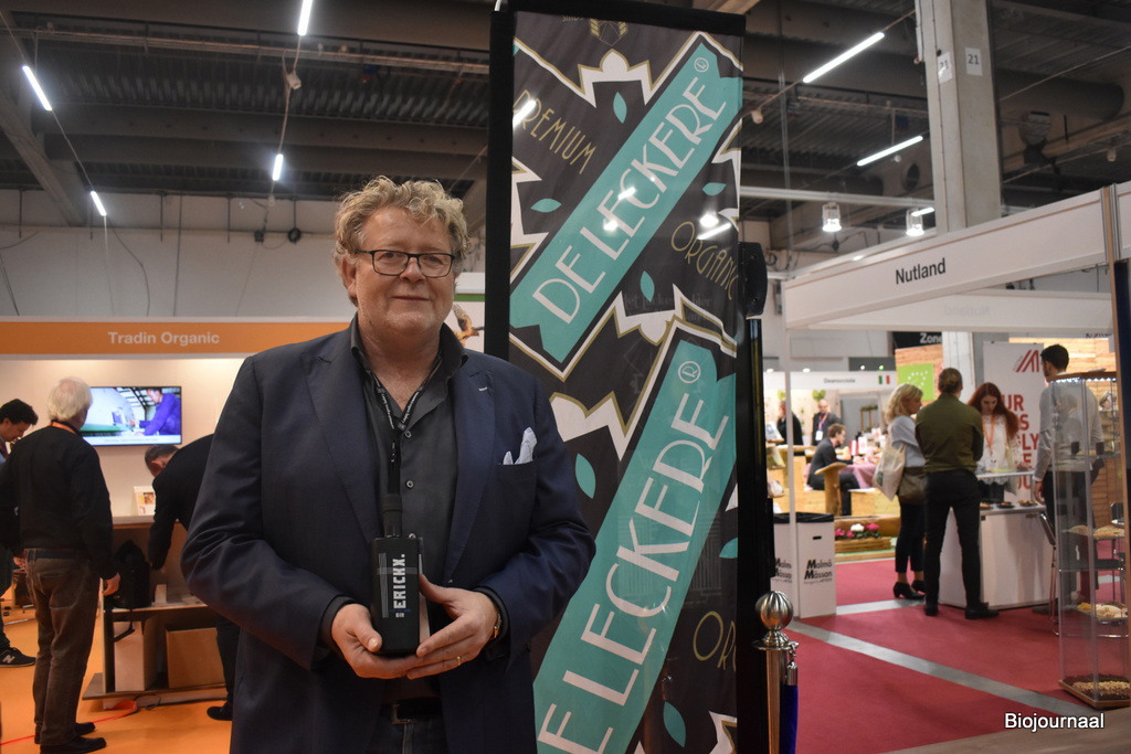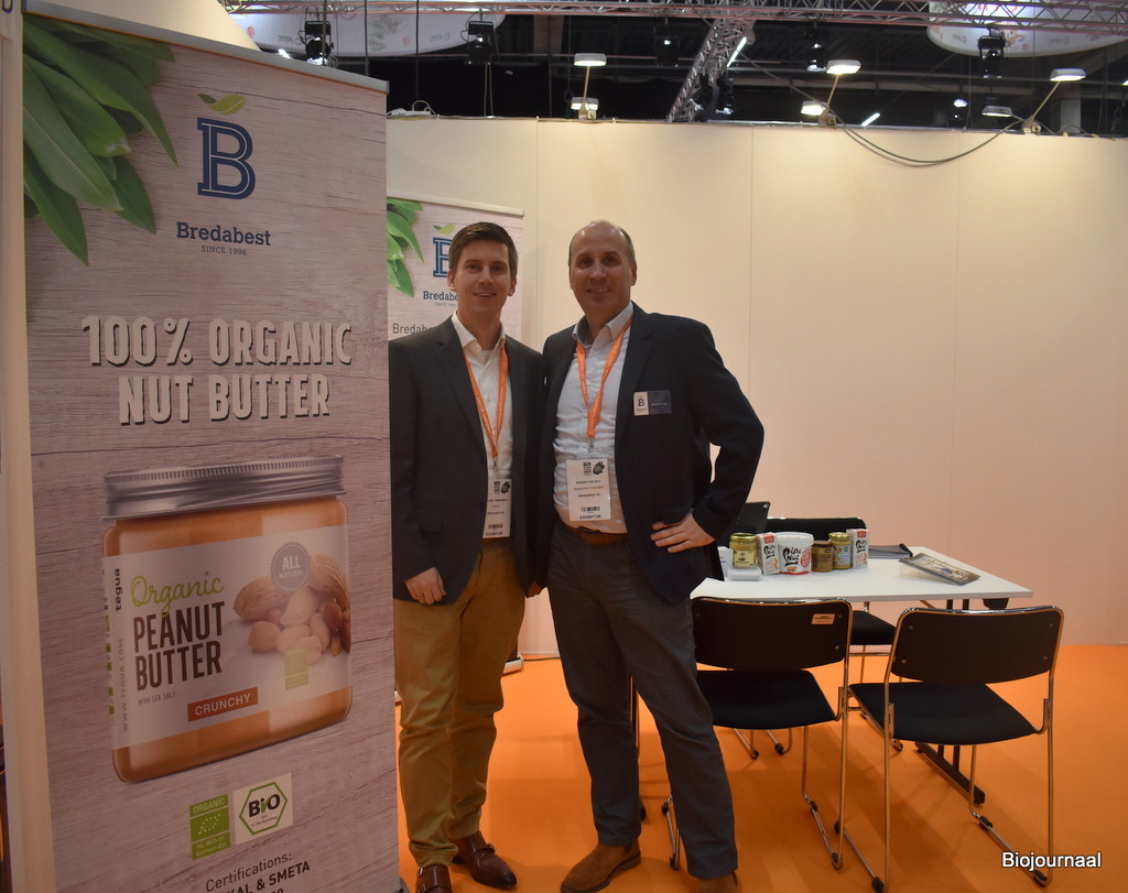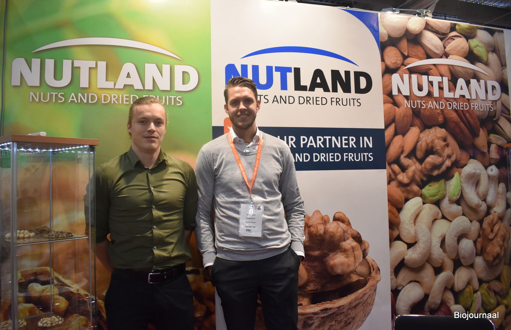 Nutland heeft zowel een conventioneel als biologisch aanbod, maar toont hier hun biologisch aanbod. “Wij hebben onder andere noten, gedroogd fruit en zaden. Wij merken goed dat de trend naar biologisch doorzet en er is veel vraag naar biologische noten en fruit”, aldus Joren Groof. Hij is hier aanwezig met zijn collega Ton Geluk.