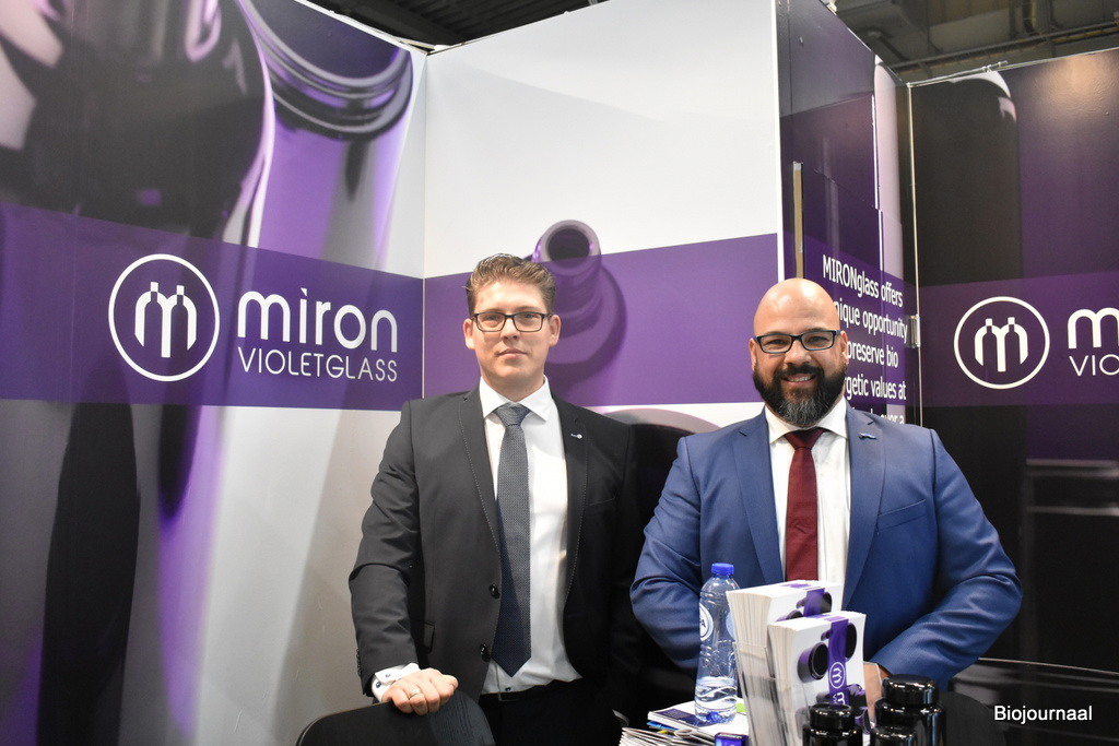 Ramon Landkroon (links) en Steffen Raven (rechts) van Miron Violetglass zijn voor het eerst aanwezig op de beurs. “Wij hebben éém product: mironglas, dat onder andere beschermt tegen zonlicht”, vertelt Ramon.