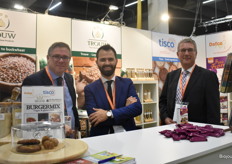 Trouw is met de verschillende merken aanwezig op de beurs. “Ons nieuwe product is de burgermix. Hier hoeft alleen water aan toegevoegd te worden”, vertelt Wouter Stern. V.l.n.r: Richard Westdorp, Wouter Stern en Dirk Kik.