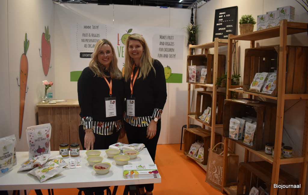 Kelly Rietbroek en Kim de Gast van Love My Veggies presenteren hun assortiment baby- en kindervoeding.