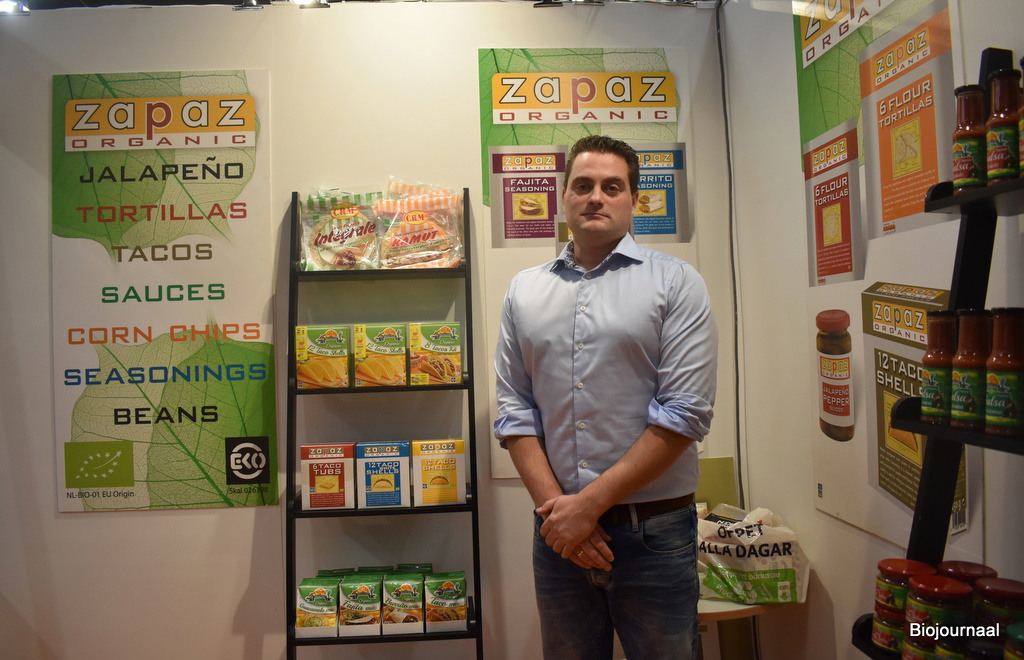 Jaap Everts van Ceress Foods presenteert de biologische Mexicaanse producten. “Het nieuwste product is piadina biologica, een soort Italiaans flatbread”, vertelt Jaap.