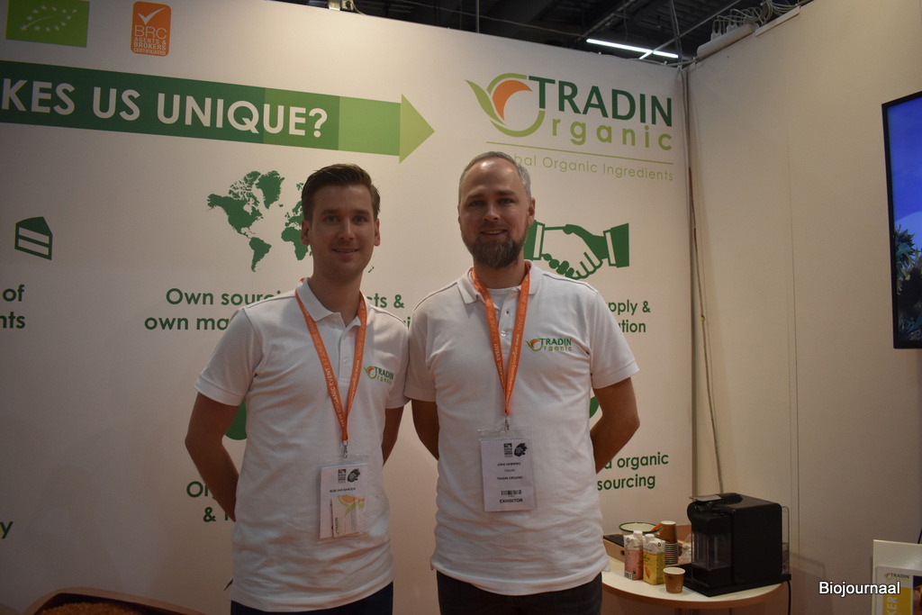 Rob van Santen en Jona Hamming van Tradin Organic zijn ook aanwezig op de beurs. Zij promoten Tradin Organic op de Scandinavische markt.